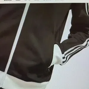 Chic bomber jacket with classic Adidas stripes. Features a bold black and white design. Ideal for casual wear.