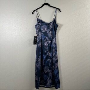 NWT Lulus Favorite Icon Dark Blue Floral Satin Cowl Neck Slip Midi Dress MD