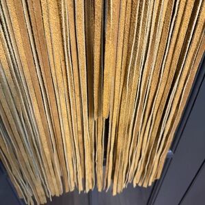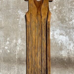 Good vintage condition. A few leather repairs, marks on leather, and a few shortened fringe pieces are shown in pictures.
