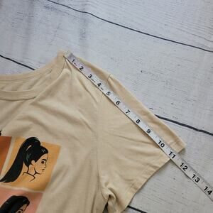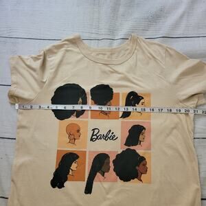 Barbie Size M Beige Graphic Tee Diverse Women Square Grid Hairstyles Casual