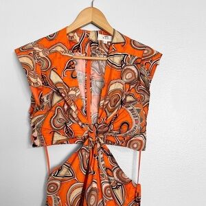 A.L.C Alexandria Orange Printed Statement Iconic Style Cutout Midi Dress