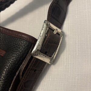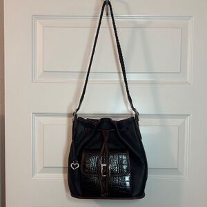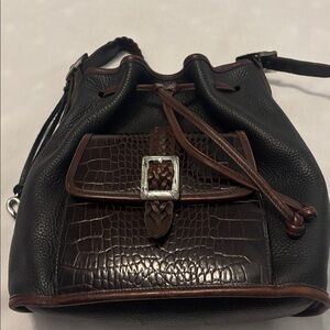 VTG Brighton Black & Brown silver Bucket Bag Crocodile print pebbled leather 90s