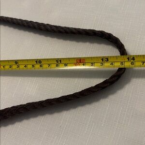 This stylish black bucket bag is perfect for any occasion. Its sleek design and versatile color make it a must-have accessory. This is used has some wear mainly scratches on the metal but the leather is in great shape braided strap