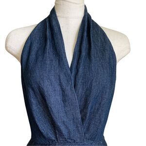 Zara Women Halter Neck Midi Dress XS Blue Minimal Elegant Side Zip Pre-Owned