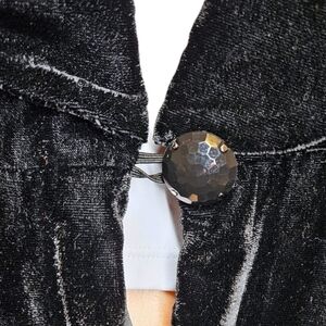 Elevate your wardrobe with this stunning vintage Y2K Charlotte Russe blazer. The black velvet material is both luxurious and versatile, perfect for any occasion from a wedding to a casual outing. The blazer features a collared neckline, button closure, and ruched short sleeves, adding a touch of whimsy to your look. The blazer is also lightweight, easy to care for, and comes with pockets for added convenience.
