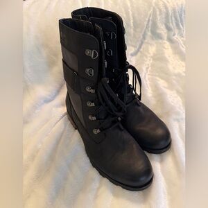 Sleek black combat boots with lace-up design. Durable and stylish for everyday wear.