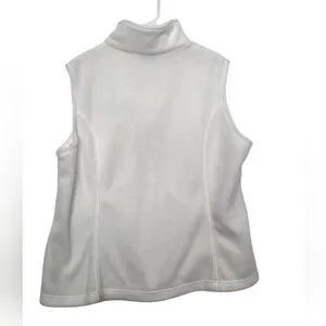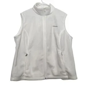 Columbia Womens Fleece Vest Beige Full Zip Pockets Outdoor Camping Sz XL