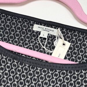 Max Studio London casual top with black-and-white circle print.