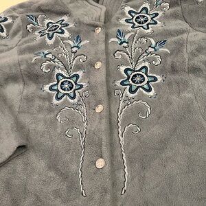 Bob Mackie Wearable Art Fleece Jacket – Gray Embroidered Floral – Plus Size 2X