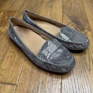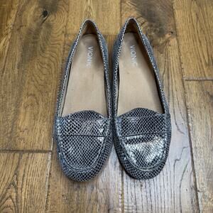 Vionic Larrun Driving Loafer Shoes Women's 9 Silver Leather Snakeskin Embossed