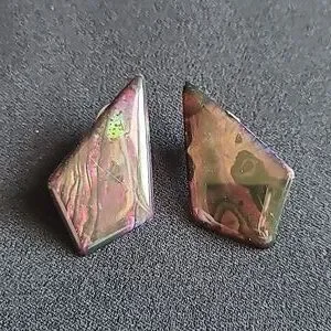 Vintage 90's earrings, enamel over metal, pierced ear, black and purple.