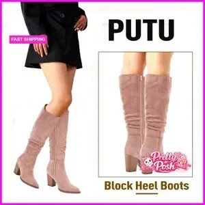 A sleek and stylish boot featuring a slouch design and side zipper closure. The chunky heel provides all day wear comfort, making these a versatile choice for pairing with skirts, dresses, or jeans.