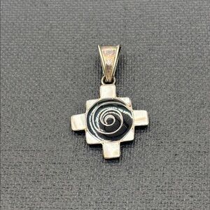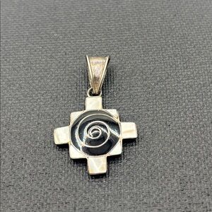VTG 950 sterling silver Peruvian Chakana black onyx w/mother of pearl inlay boho