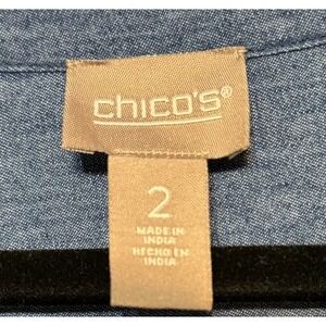 Chico's Western Chic Boho Cowgirl Denim Blouse Womens Size 2(Large) Artisanal