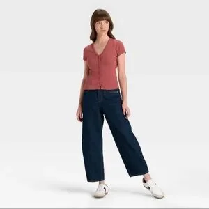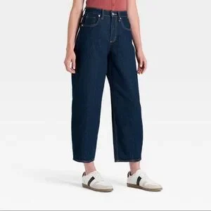 Women High-Rise Easy Barrel Ankle Jeans Universal Thread Rinse Dark Wash 2 & 6S