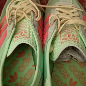 Adidas SL 72 OG sneakers in mint with coral accents. Sleek and comfortable design. box is damaged. product is as shown in picture