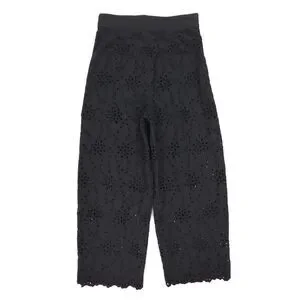 ZARA Wide Leg Sheer Eyelet Lace Crop Pants Soft Girl Boho Minimal Resort Black