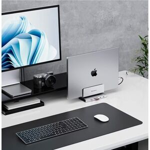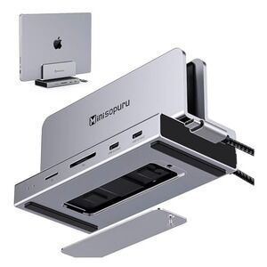 Minisopuru 10-in-1 vertical docking station provides a comprehensive connectivity solution for MacBook and Windows laptops. This multifunctional hub features a built-in M.2 NVMe SSD enclosure supporting speeds up to 10Gbps, allowing for seamless storage expansion. The sleek aluminum design serves as a space-saving vertical stand while delivering 4K@60Hz HDMI output, high-speed USB 3.2 Gen2 ports, and reliable Gigabit Ethernet. Power delivery through the USB-C PD port ensures your device stays charged during intensive tasks, while integrated SD and TF card slots offer quick access to media files.