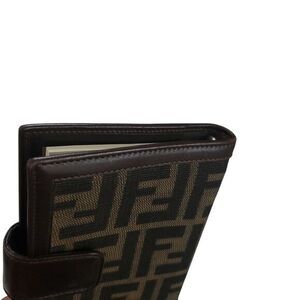 Fendi Zucca Agenda Wallet Planner Brown Black Jacquard Leather Vtg