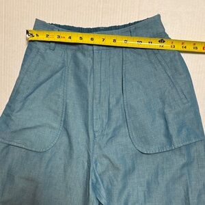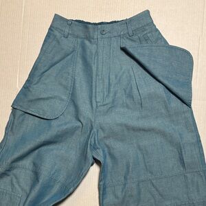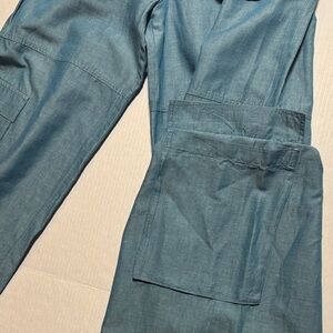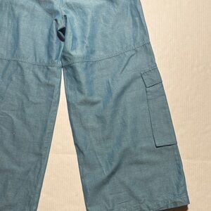 MOUSSY Out Pocket Bag Blue Cargo Pants Cotton Linen Elastic Waist Stacking SZ 1