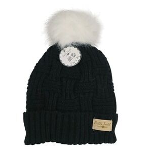 Britt's Knits Women's Unique Weave Plush Lined Knit Hat with Pom, made from 100% soft acrylic with a plush sherpa fleece lining. It features a basket weave design and is available in