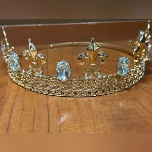 Elegant gold tiara featuring sparkling crystal accents. Perfect for special occasions.