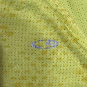 Neon yellow athletic shirt. Perfect for exercise or outdoor wear. Unisex Medium. Lettering on shirt shows signs of wear, but great condition overall.
