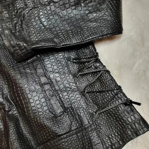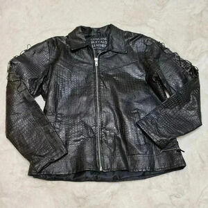 Navarre Croc Embossed Black Buffalo Leather Embroidered Rose Moto Jacket Biker