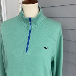 Vineyard Vines Men Pullover M Quarter Zip Knit Long Sleeve Green Cotton Blend