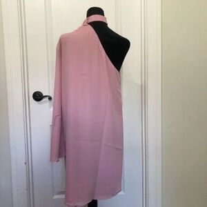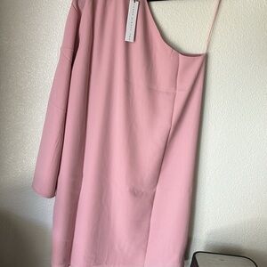 New with tags, Three Eighty Two pink one-shoulder long-sleeve mini dress in size small. This dress features a one-shoulder design and a mini length.