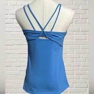Y2K Jazzercise Blue Strappy Back Built In Bra Tank Top M USA Yoga Workout