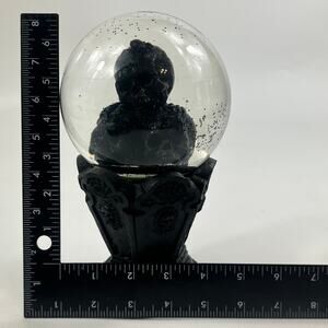 Gothic Skull Bust Musical Waterglobe Black Pedestal Halloween Decor 7.5 In
