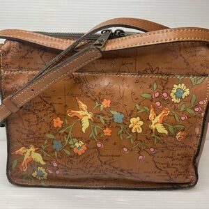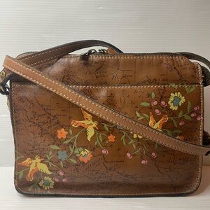 Patricia Nash Poppy Floral Bird Leather Map Crossbody