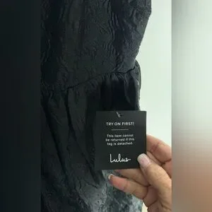 Lulus NWT Adorable Mood” Black Floral Jacquard Puff Sleeve Babydoll Dress Medium