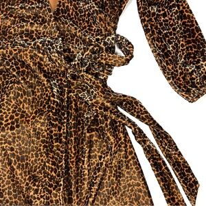 J. Crew Velvet Leopard Cheetah Animal Print Long Sleeve Wrap Dress