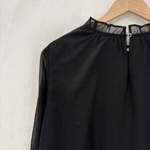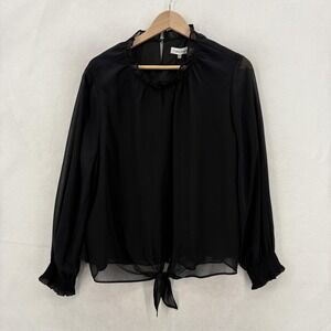 Calvin Klein Blouse Womens XL Black Chiffon High Neck Ruffle Tie Balloon Sleeve