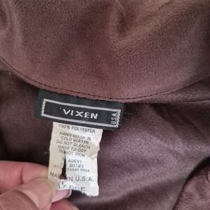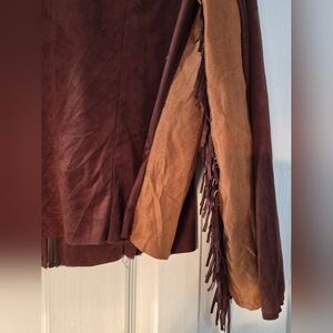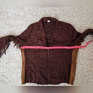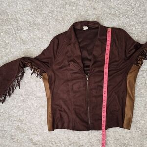 Vintage Vixen Brown Faux Suede Fringe Western Zip Jacket L Cowgirl Boho Fedtival