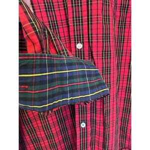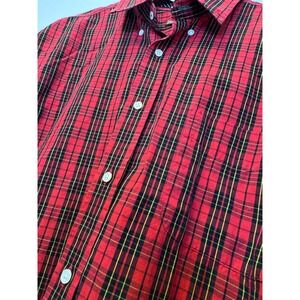 J. McLaughlin Mens Red Tartan Plaid Button Down Shirt 100% Cotton Large L