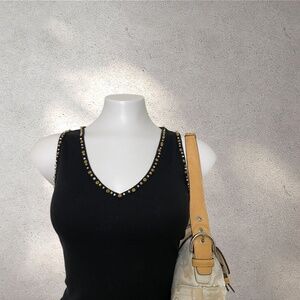 Y2K Energie Black Studded V-Neck Ribbed Tank Top
