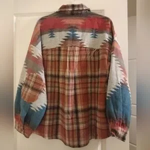 White Birch Orange And Blue Plaid/Aztec Shirt Jacket Size Medium