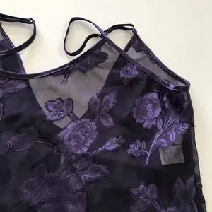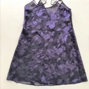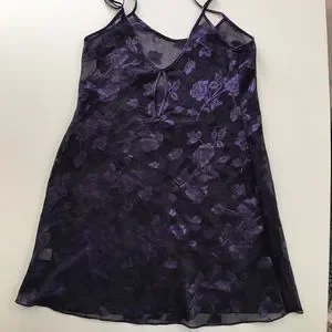 Semi-Sheer Deep Purple Gilligan & O’Malley Satin Floral Slip Nightgown Size S