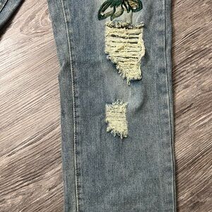 Vintage boho Embroidered Floral Straight Leg Jeans