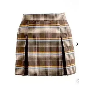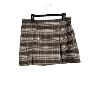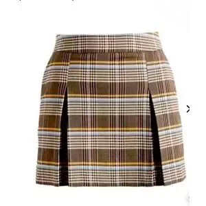 Chic Topshop plaid miniskirt in brown and cream with box pleats. Perfect for a stylish and polished look. New with tags, this skirt is ideal for any occasion. Pair with your favorite tops for a versatile outfit.