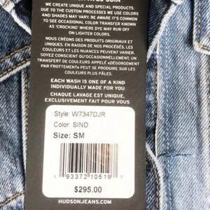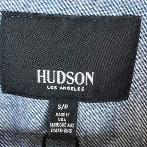 New with tags Hudson Spliced Trucker Jean Jacket. Deconstructed denim jacket offering a unique patchwork design in various blue washes. Features a classic collar, button-front closure, chest pockets, and a raw hemline. The back showcases a reconstructed denim panel with a distressed finish, adding a modern edge. Size S. Style: W7347DJR. 100% Cotton. Made in the USA. Machine wash.