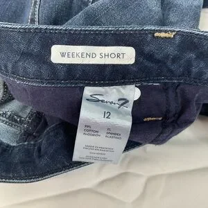 Chic dark blue jean shorts by Seven7. Perfect for everyday wear. Classic five-pocket design.
