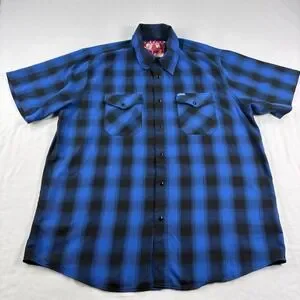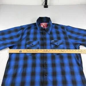 Dixxon Flannel Co Shirt Men XL Blue Plaid Pearl Snap Up City Gardens Bamboo Camp