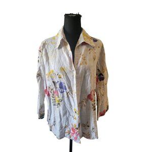 Harve Bernard Collared Button Down 3/4 Sleeve Linen Floral Top Size XL City Chic