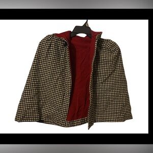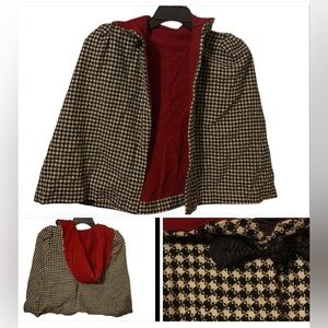 MAKE AN OFFER 🍒 Vintage Houndstooth Crimson Childs / Small Cape w/ Hood #9582