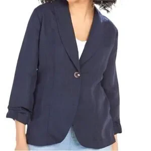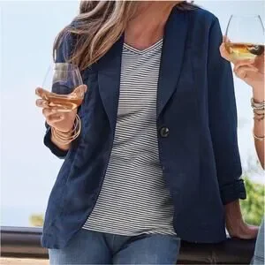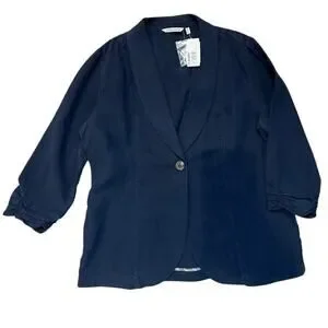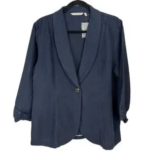 Soft Surroundings Tencel Linen Blend Navy Blue Blazer Jacket Size Large NWT