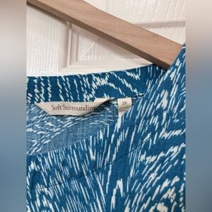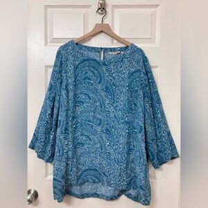 Soft Surroundings Women’s Blue Oceo Gauze Crinkle Tunic Top Size 2X Coastal Boho